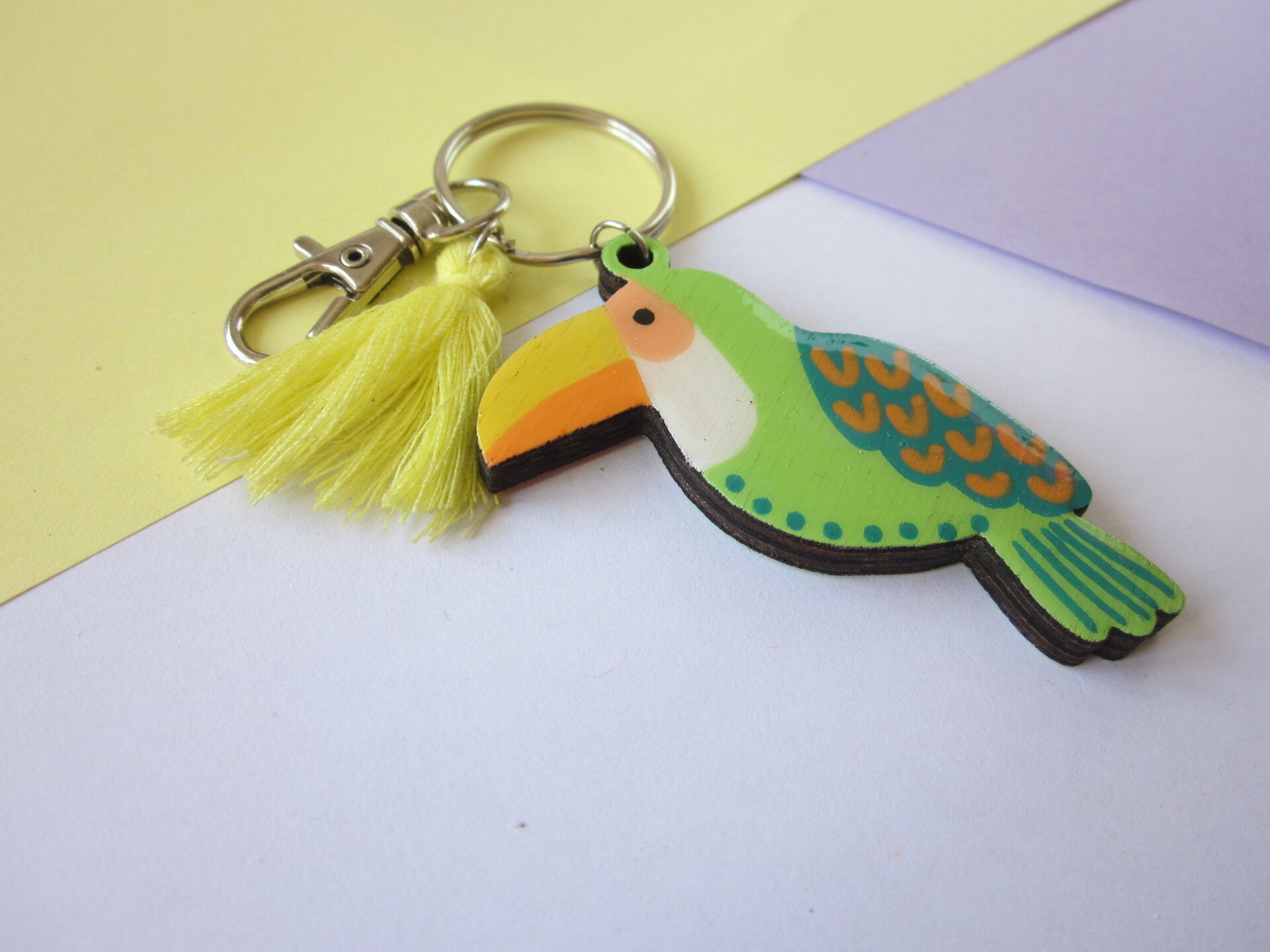 Porte-clés en bois - Toucan - Vert et orange