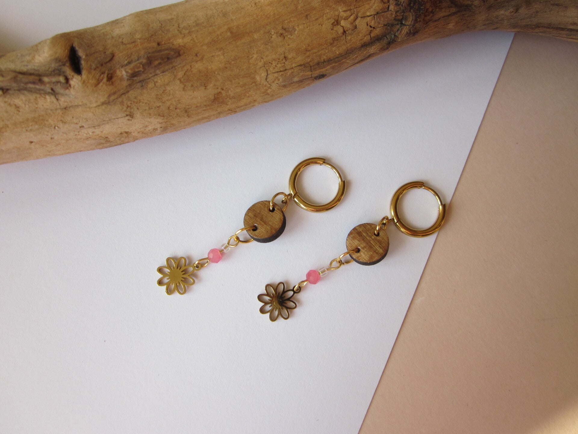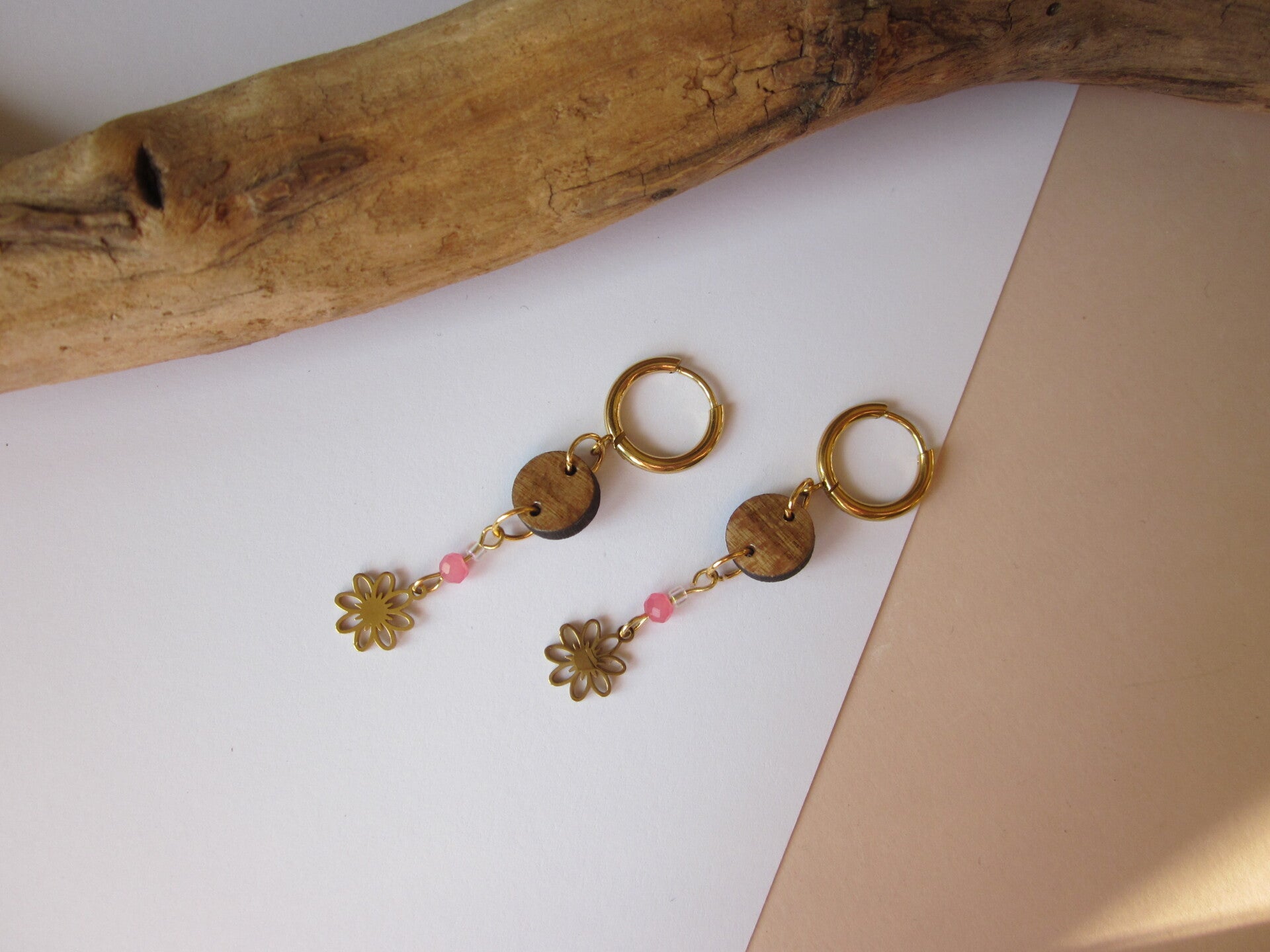 Boucles d'oreilles en bois et acier inoxydable - Margueritte