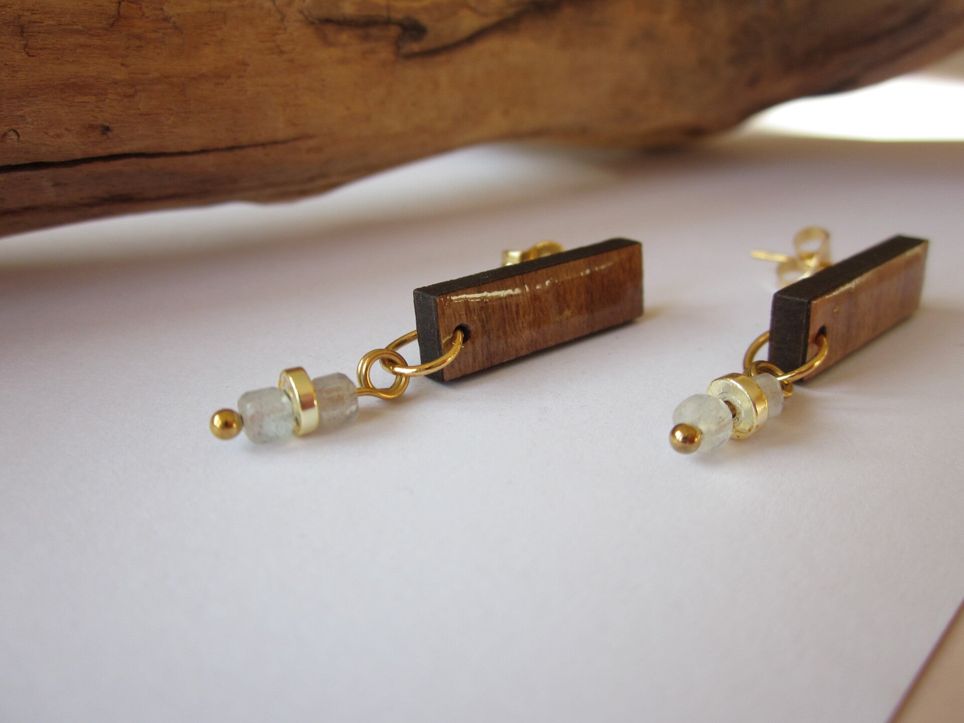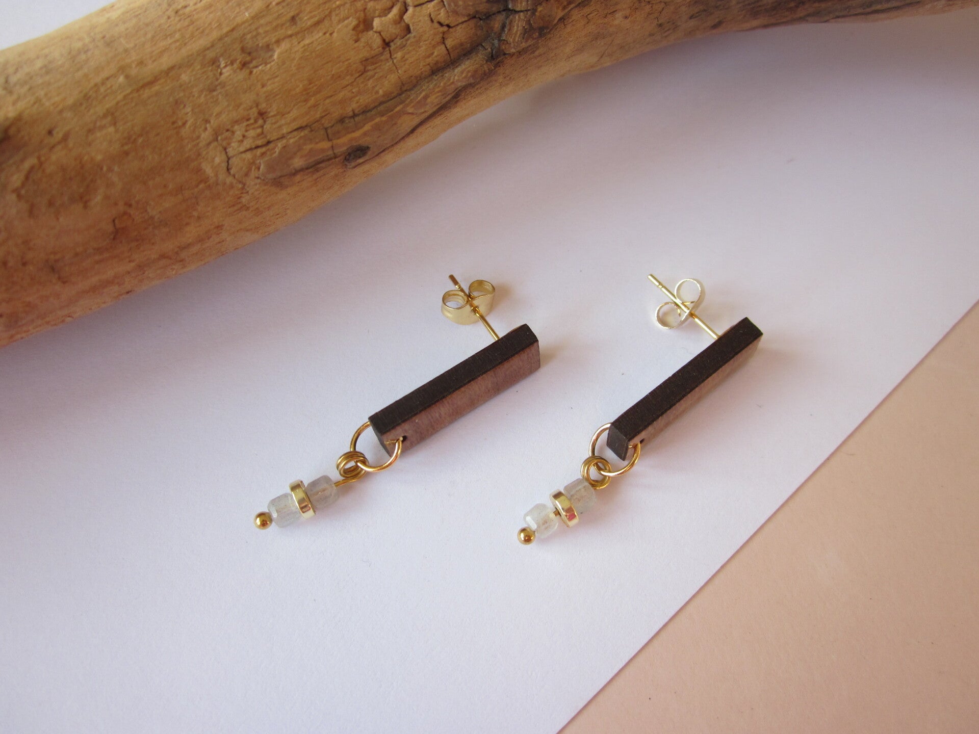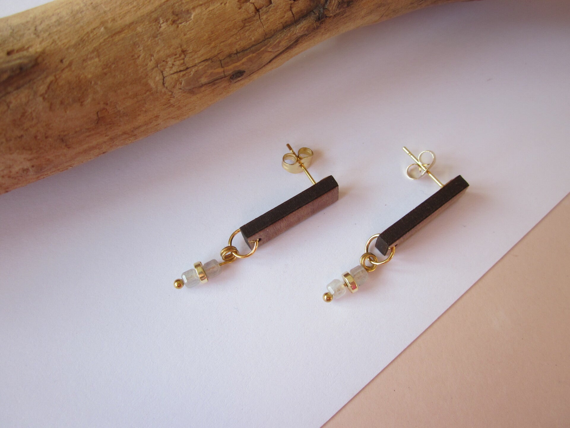 Boucles d'oreilles en bois - Perles en pierre - labradorite