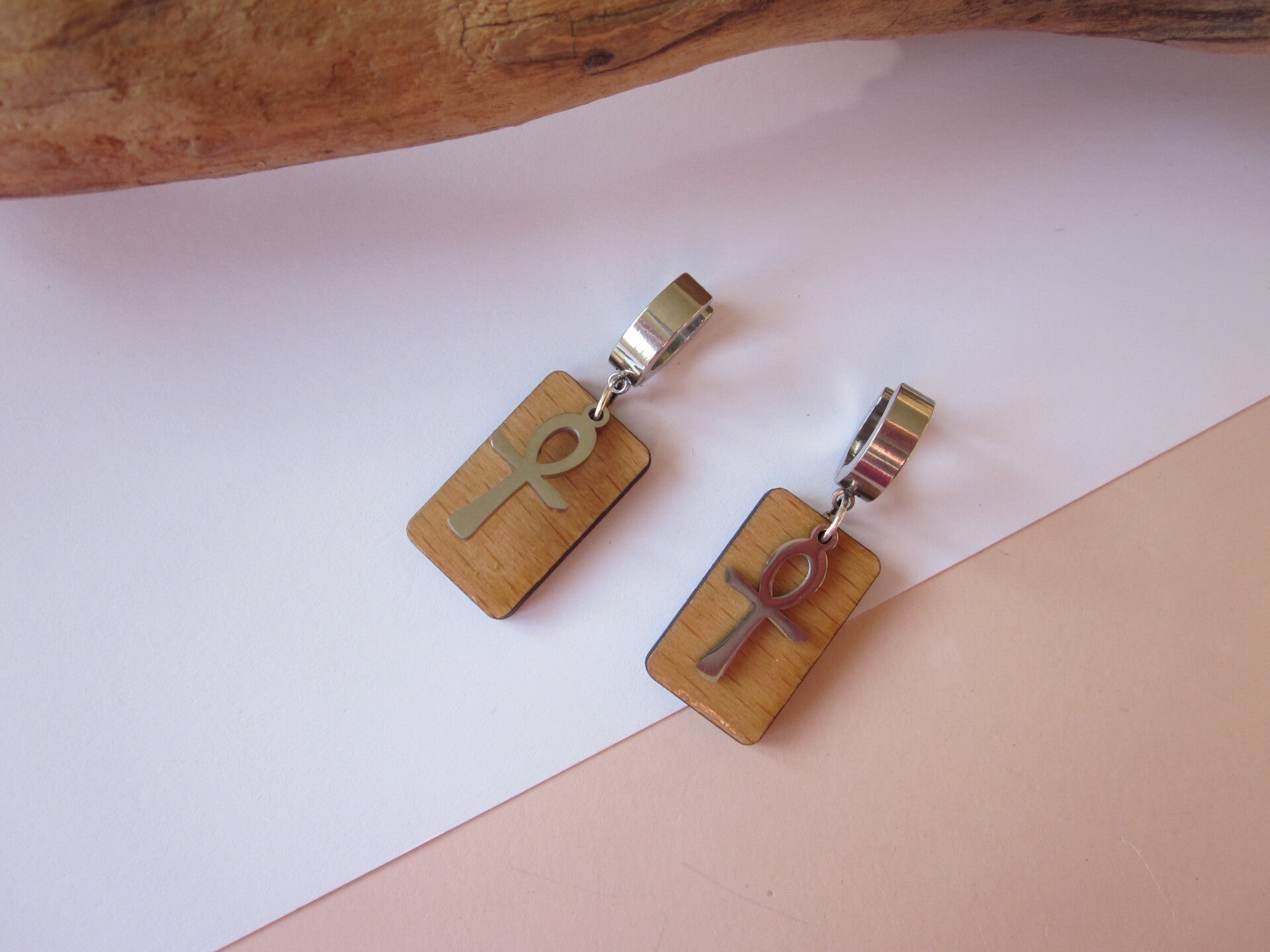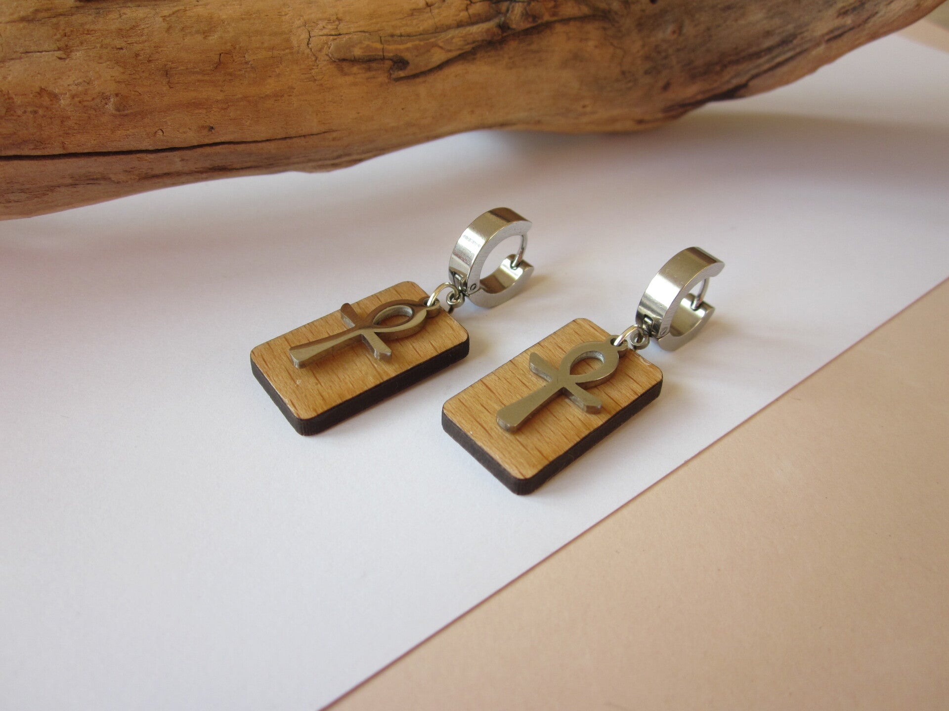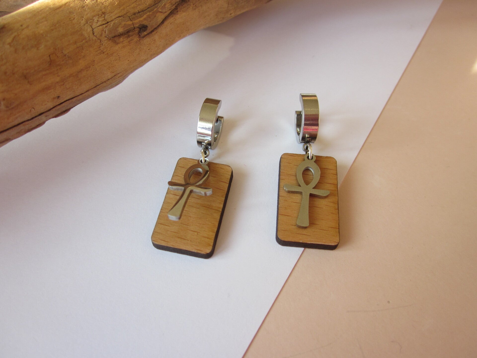 Boucles d'oreilles homme en bois et acier inoxydable - Ânkh.