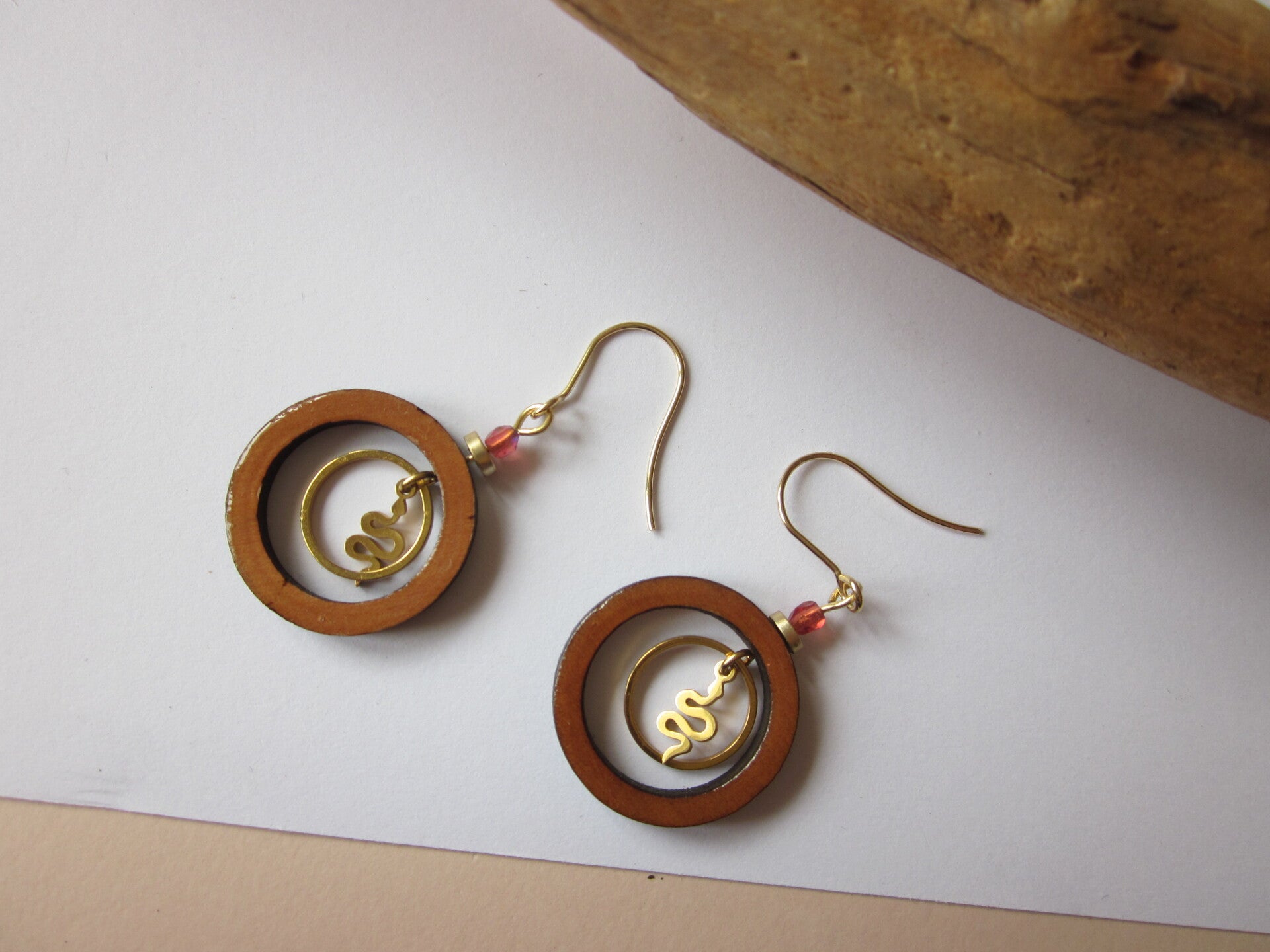 Boucles d'oreilles en bois et acier inoxydable - Serpent.