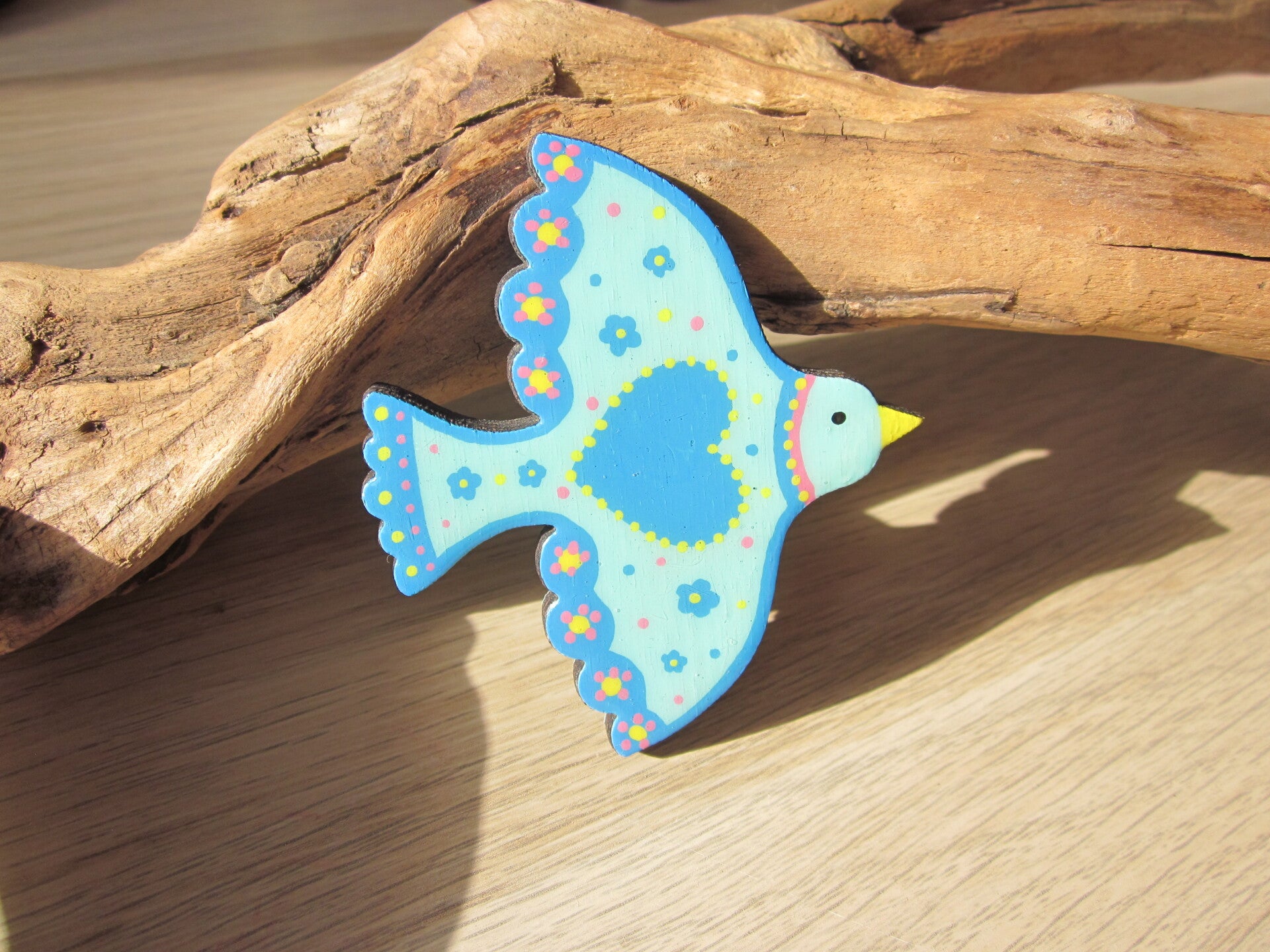 Aimant en bois peint à la main - Colombe - Bleu clair